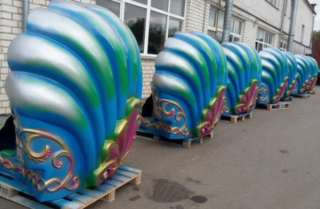 Предлагаем к закупке "Ракушки" для аттракциона "Вальс" с окраской в соответствии с эскизами заказчика. Так же производим дополнительные элементы (крыша аттракциона, сегменты декоративного ограждения итд.).